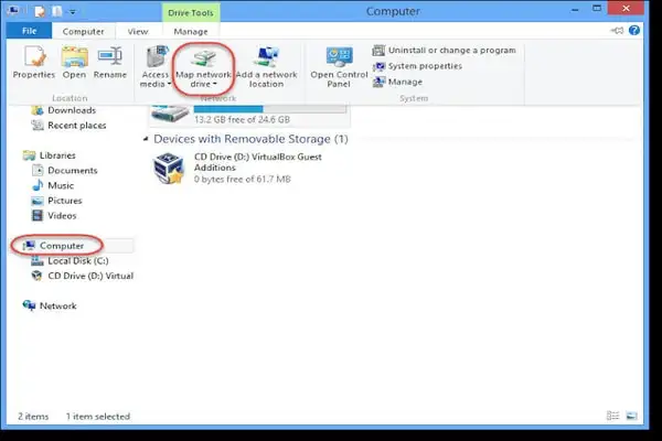 - In the Computer tab option, select Map a network drive.