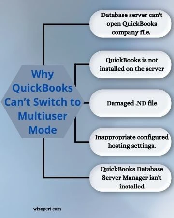 - Not able to switch to the multi user mode when the QuickBooks Database Server Manager is not running or is unable to open the company file.